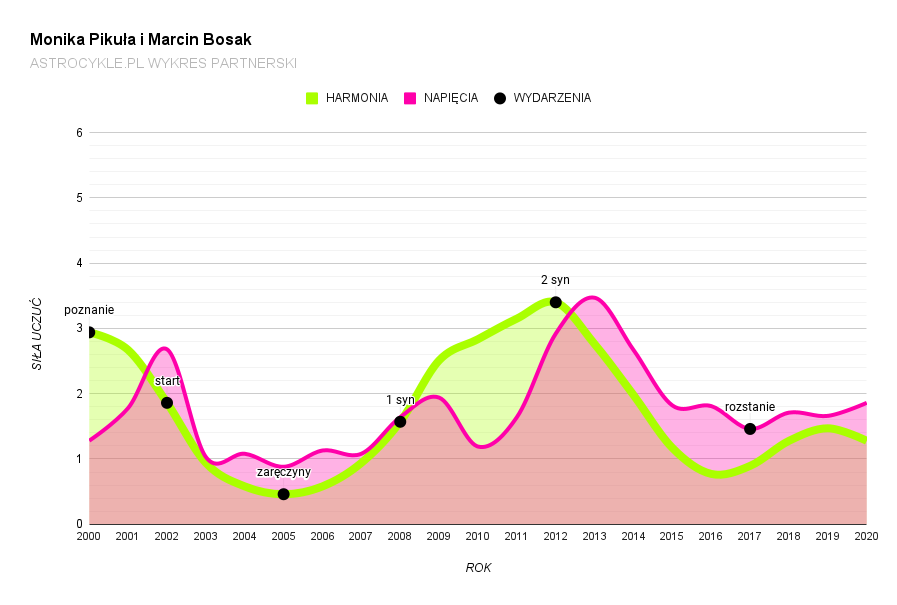 Marcin Bosak w 2017 rozstał się ze swoją wieloletnią partnerką Moniką Pikułą, z którą ma dwóch synów. Horoskopy oraz wykres partnerski mogą rzucić nieco światła na dynamikę ich związku i siłę uczuć.